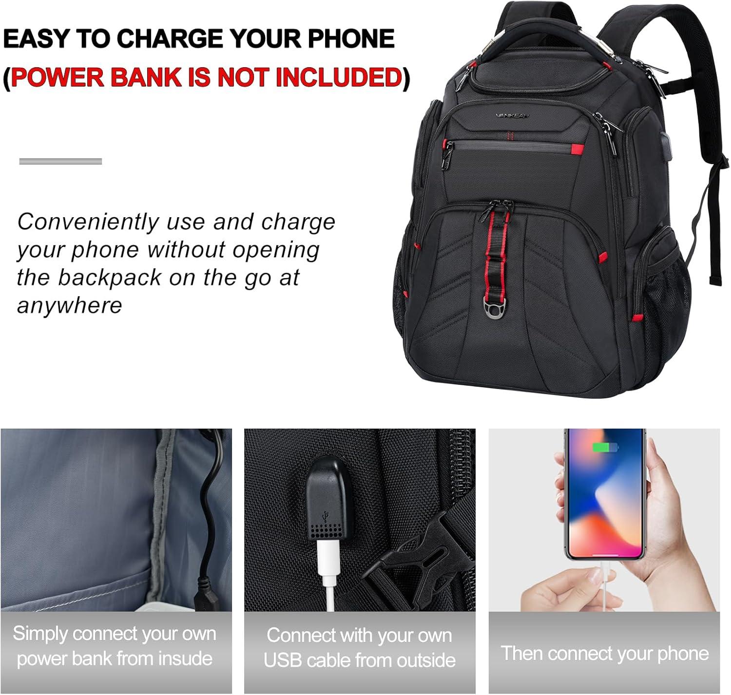 LARGE CAPACITY & MULTI-FUNCTIONAL COMPARTMENT: This large travel backpack with separated compartments and lots of pockets which can provide roomy space for your 17.3” laptop, iPad, power bank, A4 files, wallet, cards, clothes etc. A sunglass hard shell zone is designed on the top which is convenient and safe for you to put your sunglass, cell phone etc.