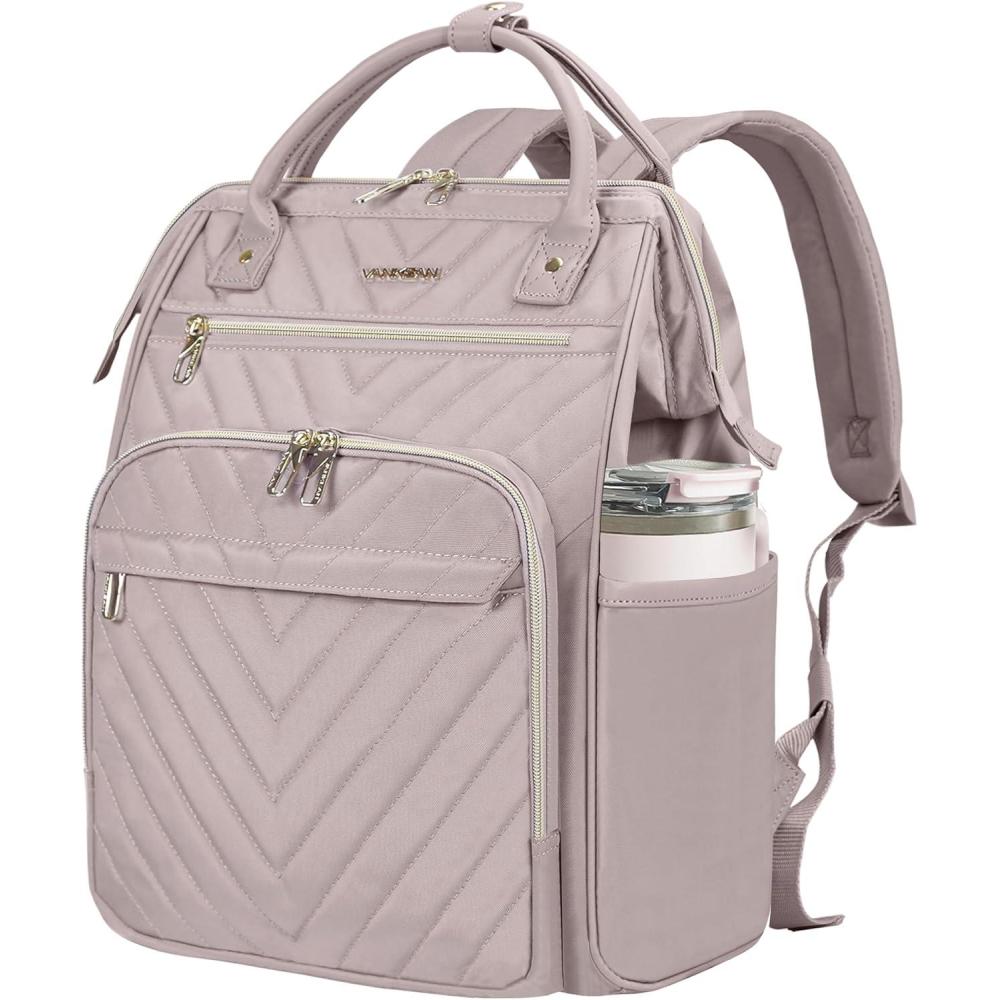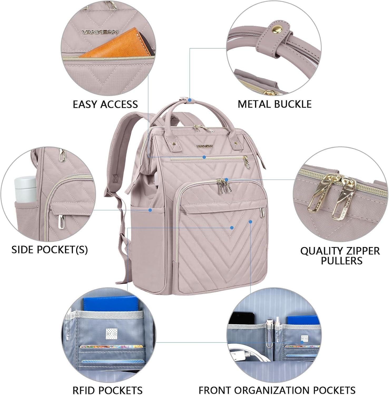 imageVANKEAN 17 Inch Laptop Backpack for Women Men Fashion Computer Work Bag Large Capacity Waterproof Backpack with USB Port amp RFID Pockets College Daypack Business Travel BeigeArmy greenQuilted Light Dusty PinkGrey Purple