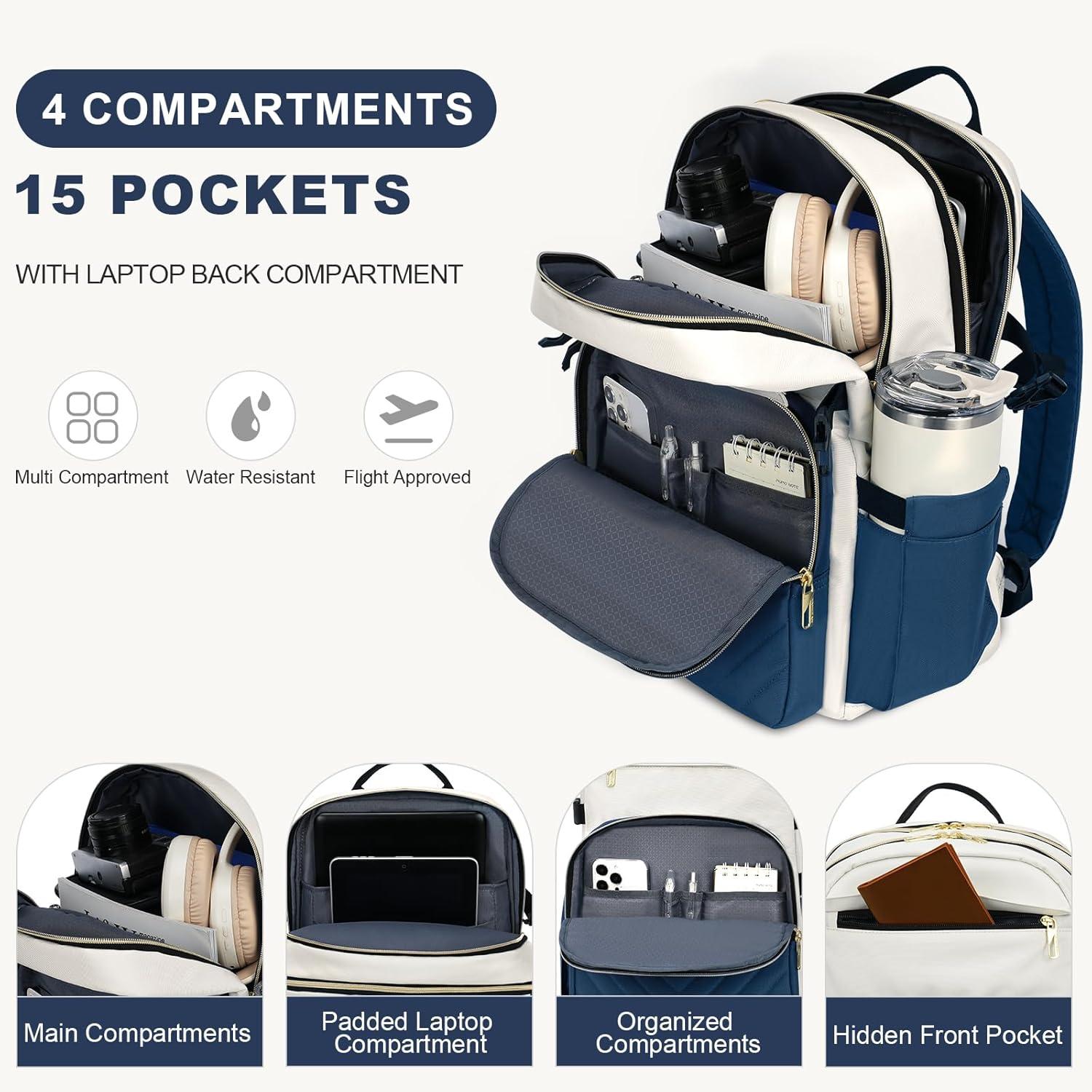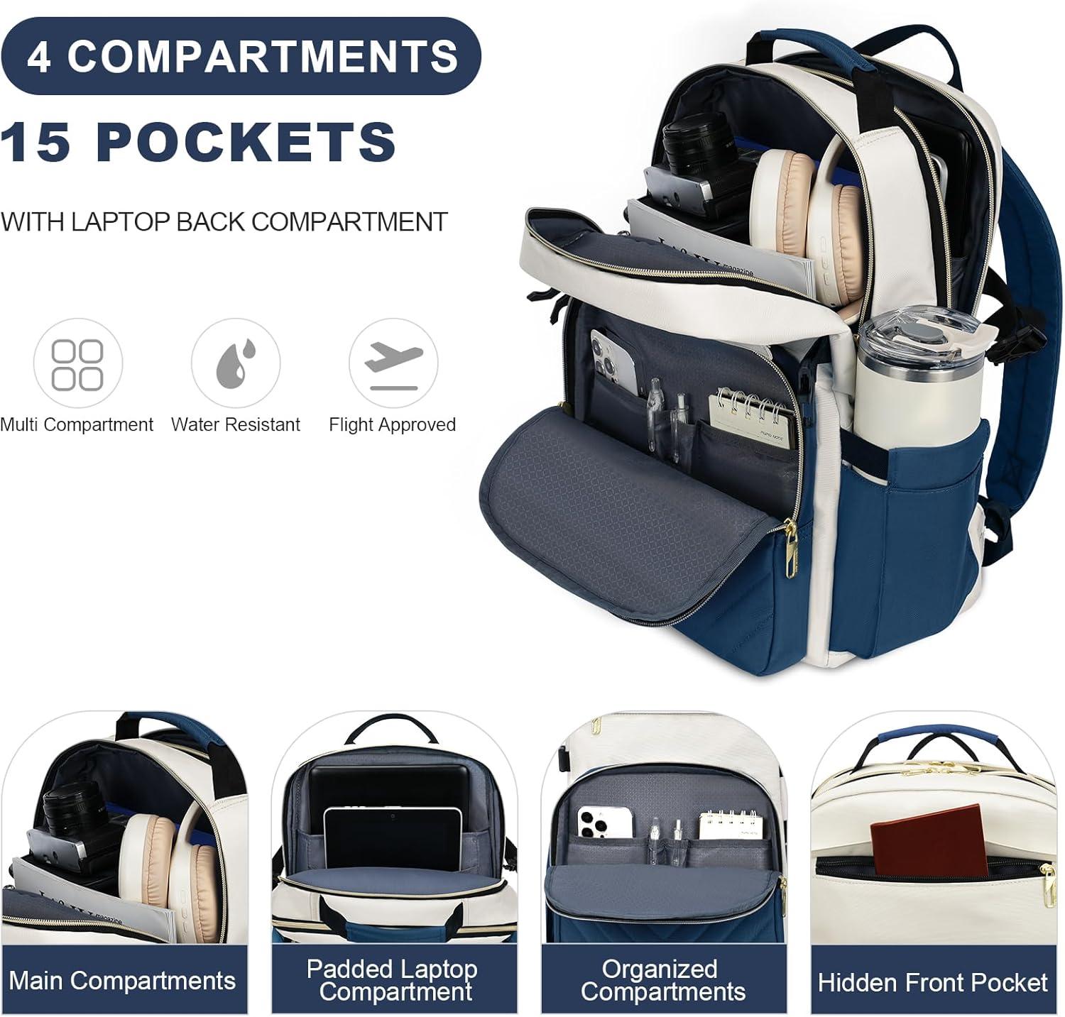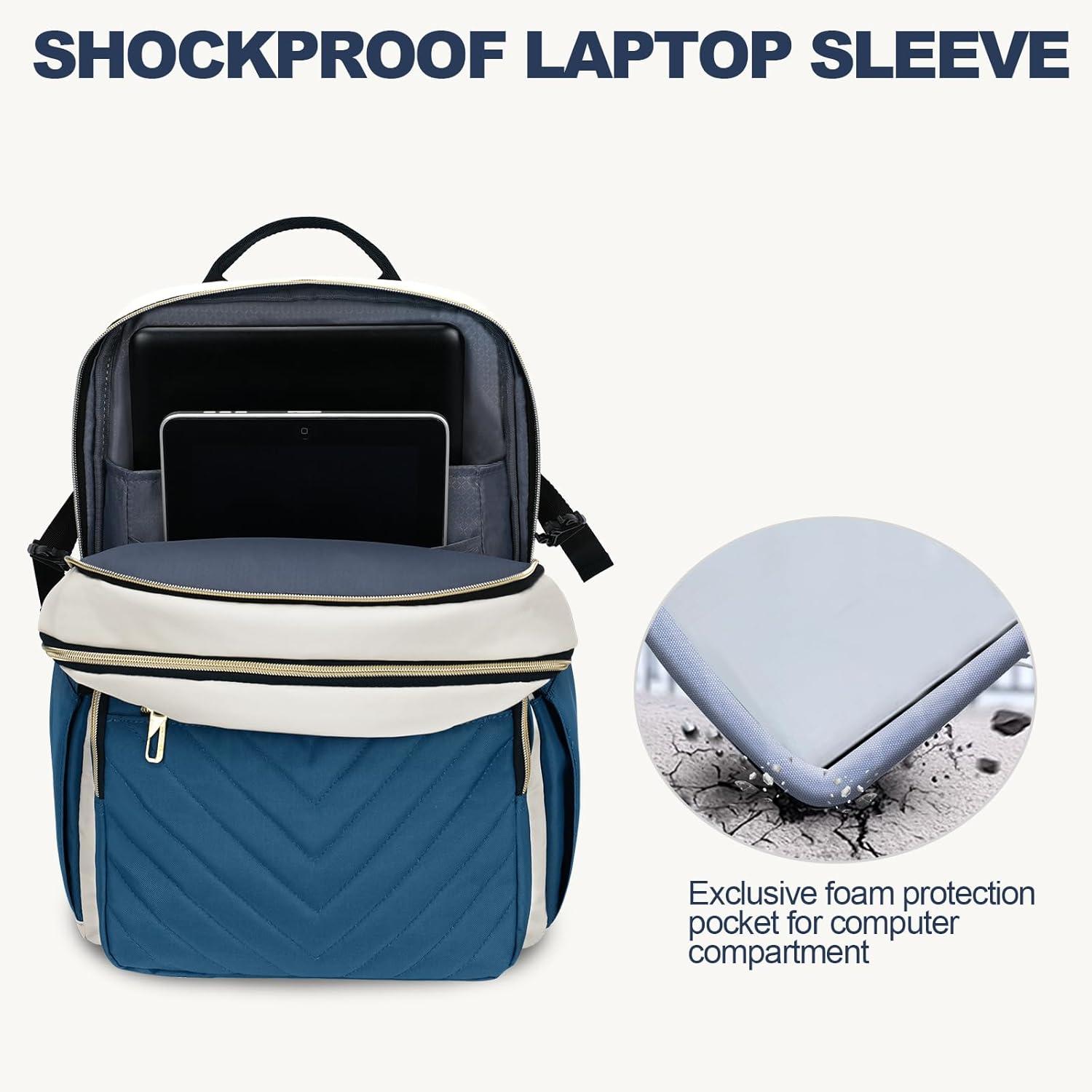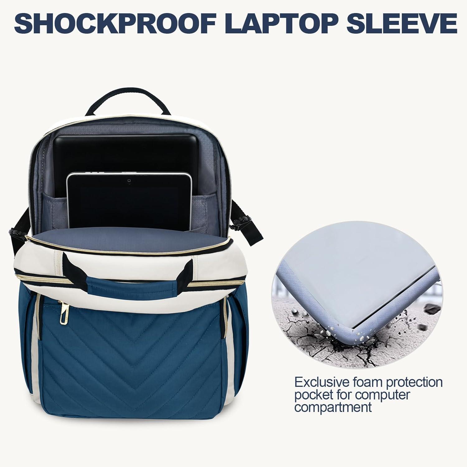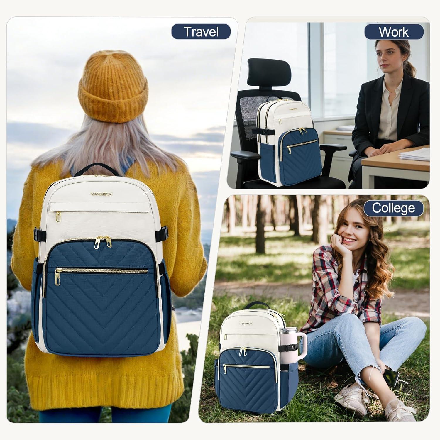 imageVANKEAN Laptop Backpack for Women with Pouch Pocket for Large Capacity Tumbler 156 Inch Laptop Computer Bag Travel Backpack PurseWaterproof Work Business College Teacher Bags BeigeLight GreenBeigehaze Blue