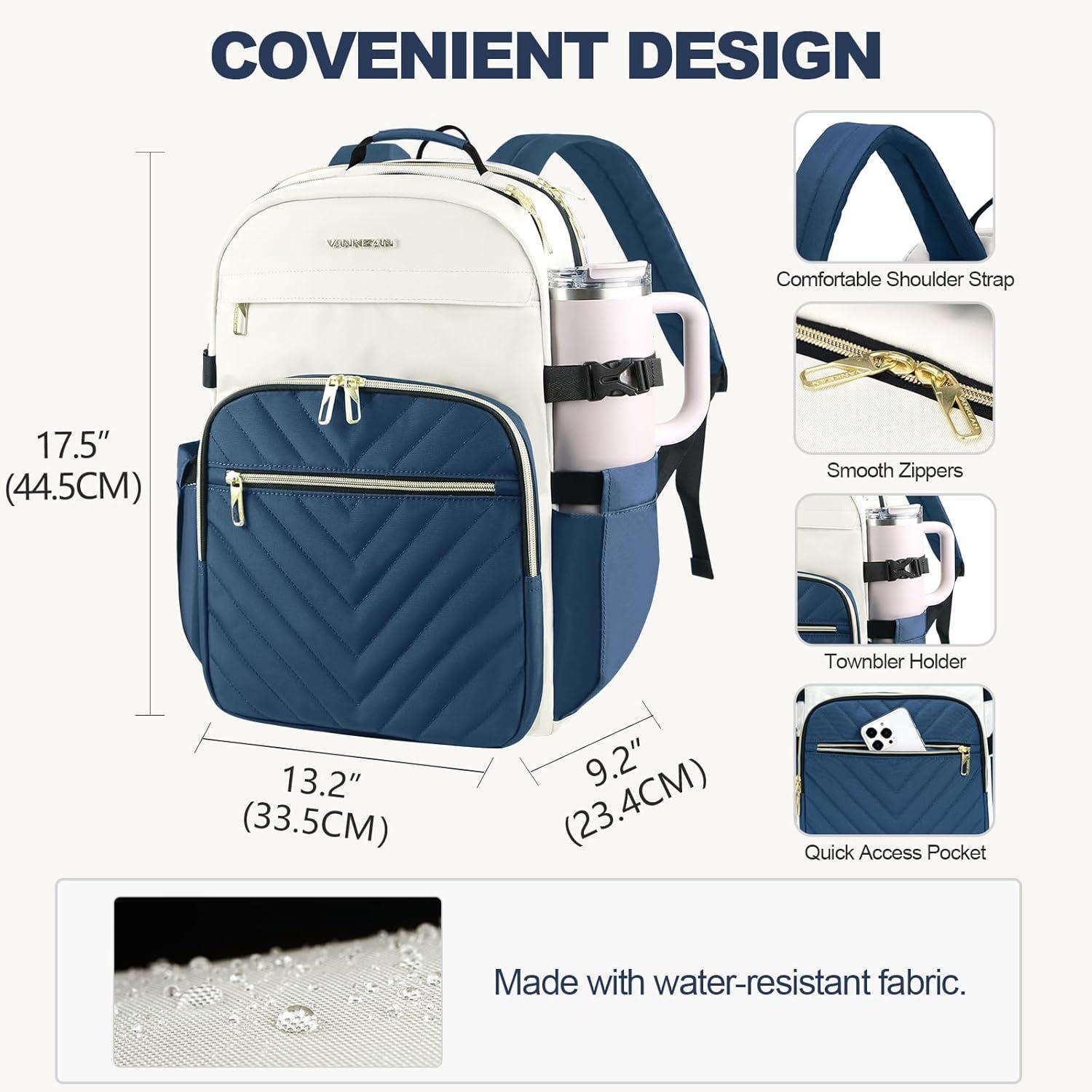 VANKEAN Laptop Backpack for Women with Pouch Pocket for Large Capacity Tumbler, 15.6 Inch Laptop Computer Bag Travel Backpack Purse,Waterproof Work Business College Teacher Bags, Beige-Light Green(Beige-haze Blue)