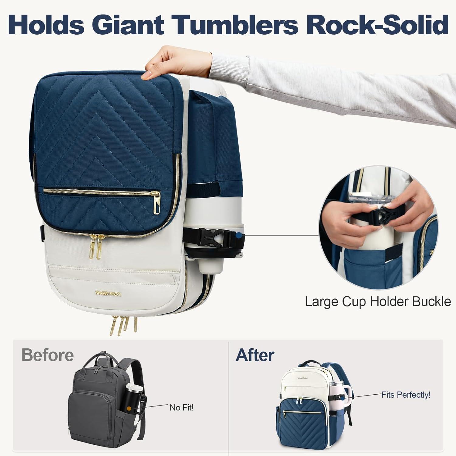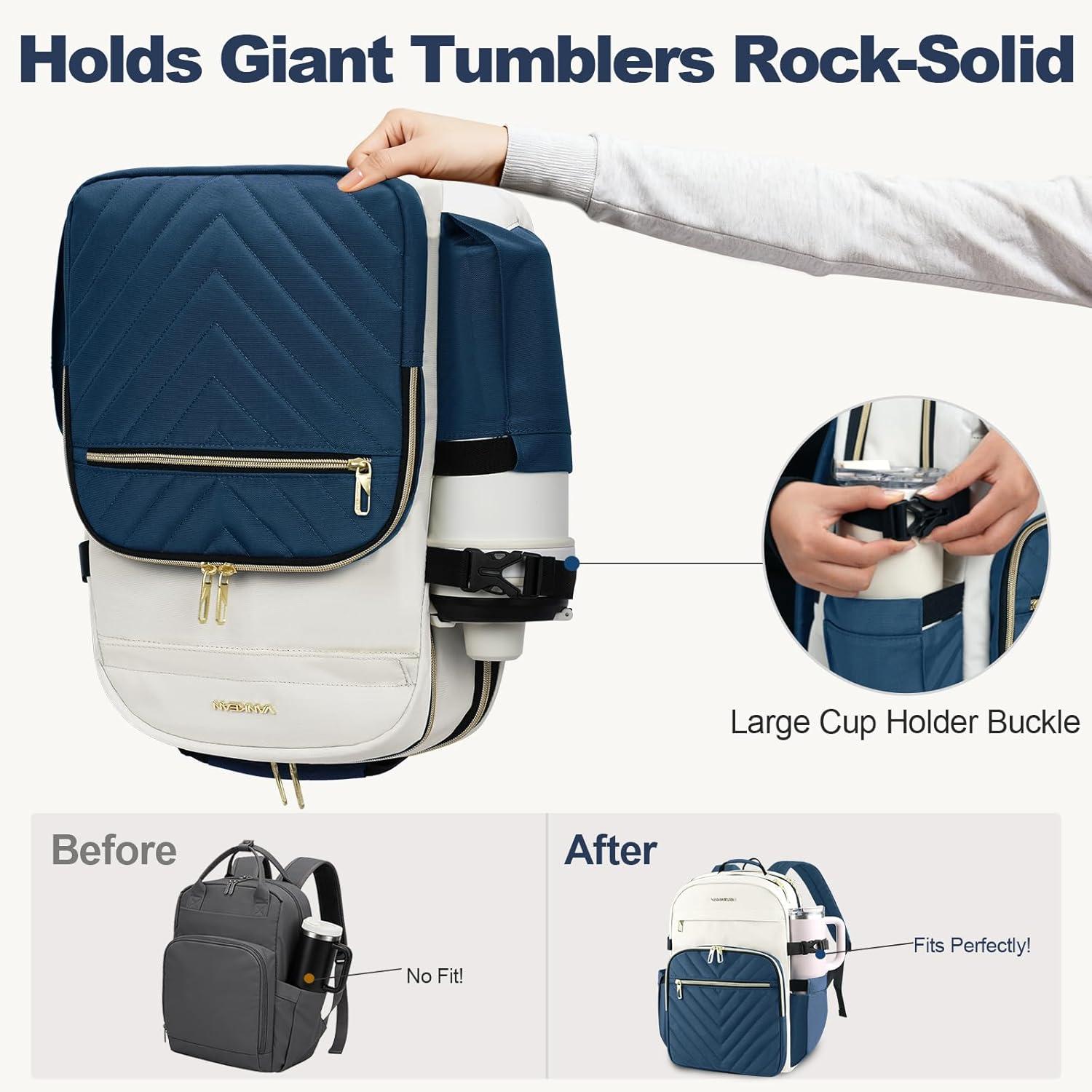Large Tumbler Holders & Designed for Women: Specially designed side pockets easily fit large tumblers and water bottles, keeping hydration within reach. Thoughtfully sized and styled with a feminine silhouette—lightweight, comfortable, and perfect for women on the go.