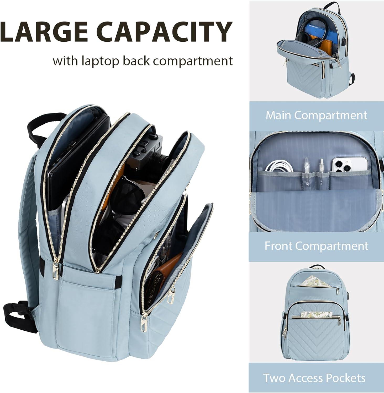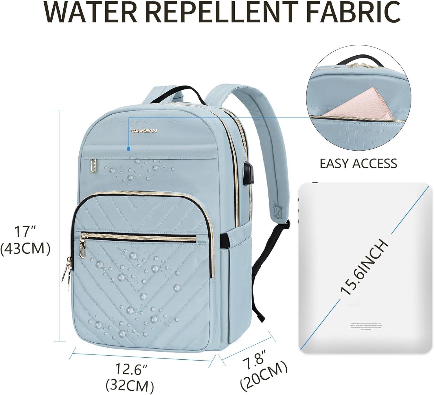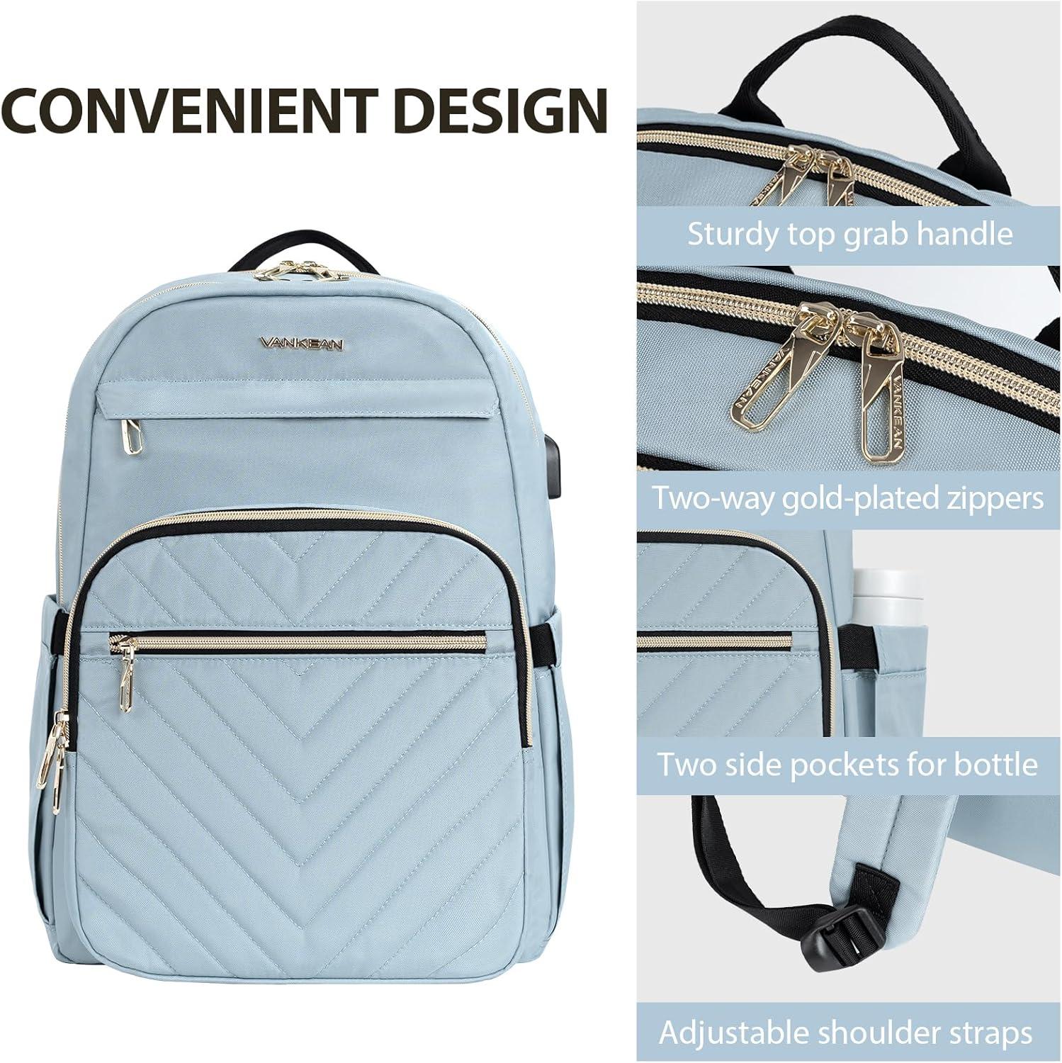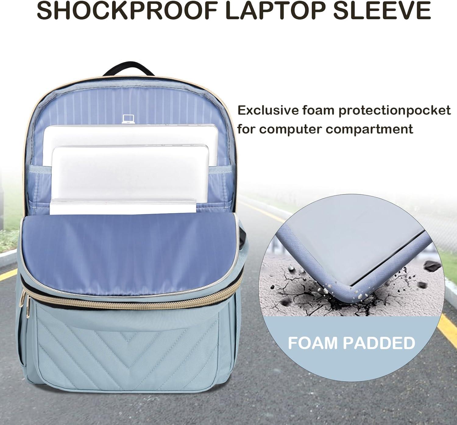 imageVANKEAN Laptop Backpack for Women with Pouch Pocket for Large Capacity Tumbler 156 Inch Laptop Computer Bag Travel Backpack PurseWaterproof Work Business College Teacher Bags BeigeLight GreenQuilted Light Blue