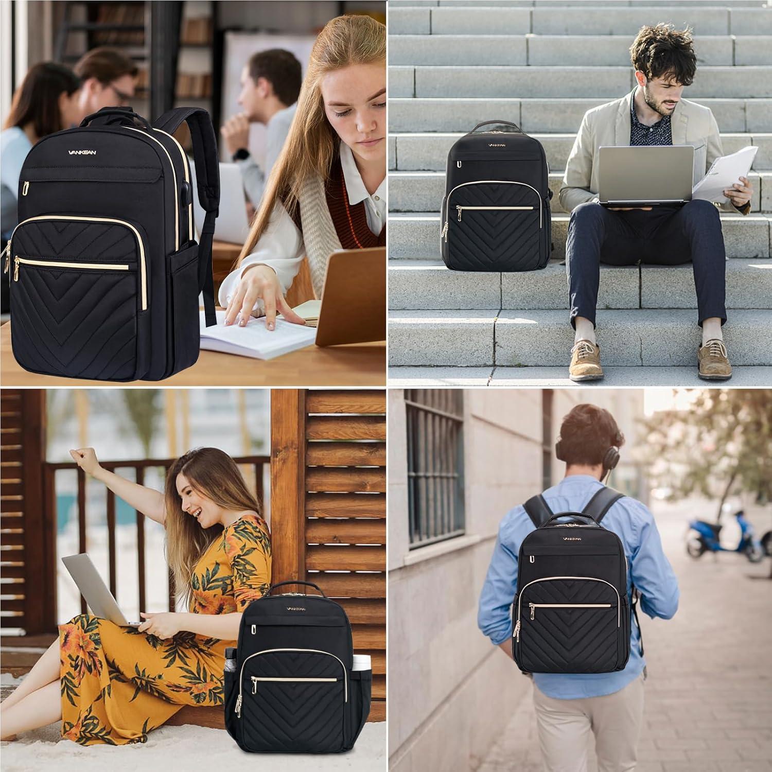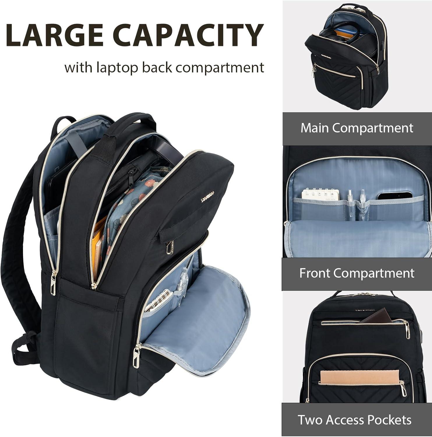 Spacious & Organized with Laptop Protection: Features 5 compartments + 2 side pockets. A separate padded sleeve fits up to a 15.6″ laptop, plus a tablet sleeve for Kindle or iPad. Main compartment holds headphones, files, and essentials; front pockets organize cards, wallet, sunglasses.