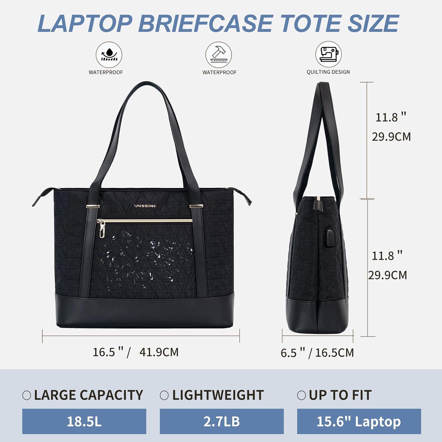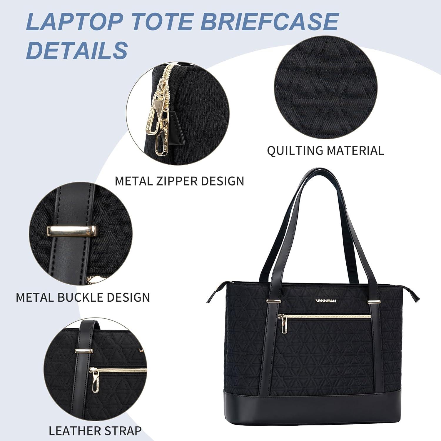 【Waterproof Material & Durability】: VANKEAN laptop tote bag made of high-quality quilted canvas and Durable leather, offers water-repellent and Wear resistance advantage. Dimensions: 16.5″x12.8″x5.6″, which is suitable for your 14″-15.6″ laptop.