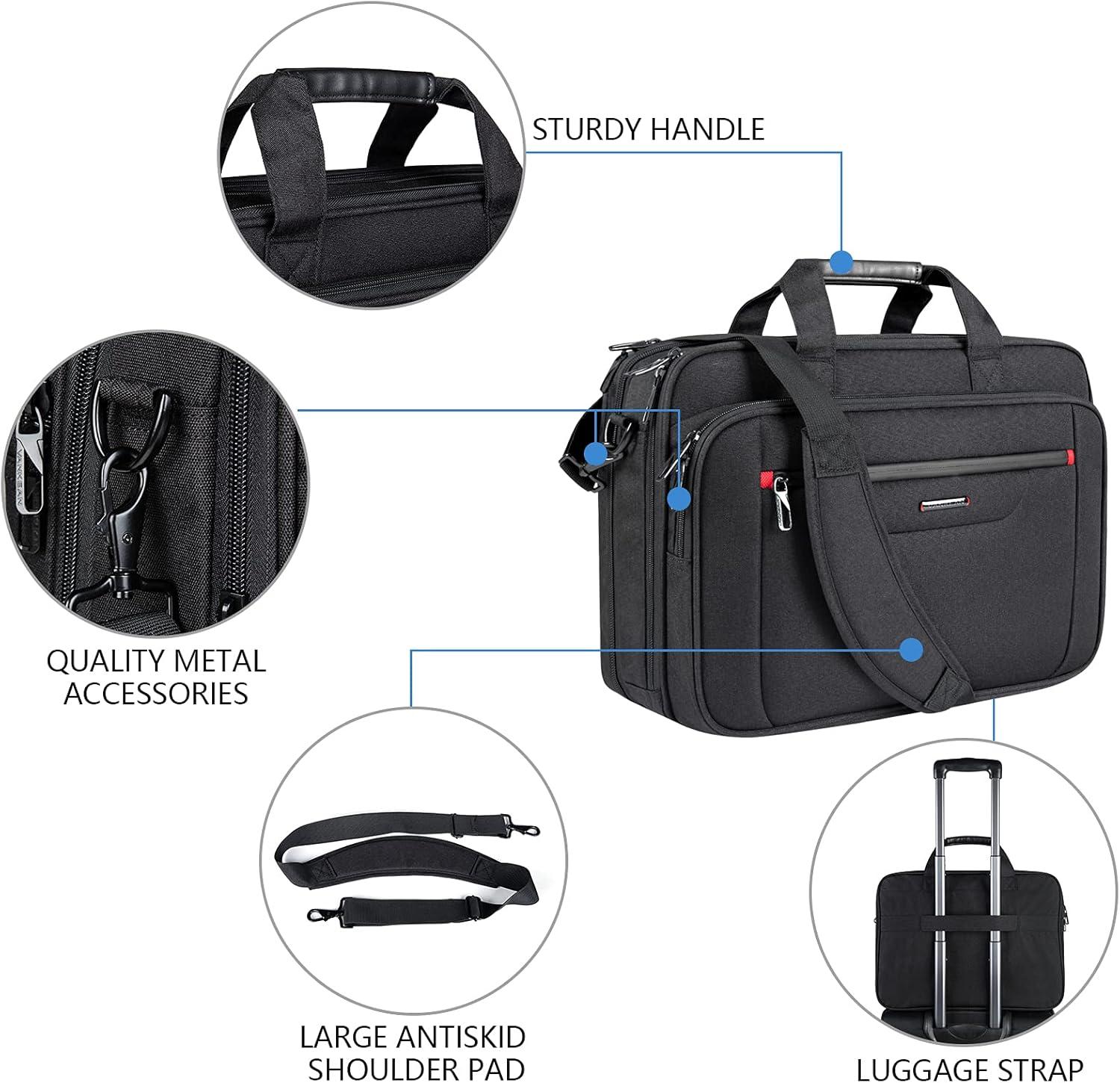 VANKEAN Laptop Briefcase for Men Women, 17.3 Inch Laptop Bag Water Repellent & Expandable Messenger Bag with Strap, Premium Shoulder Bag Womens Briefcase Computer Bag for Travel/Business, Black